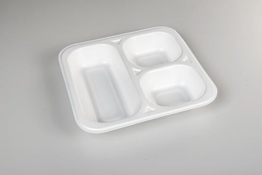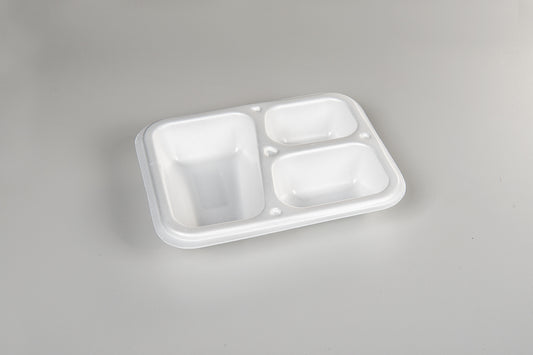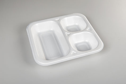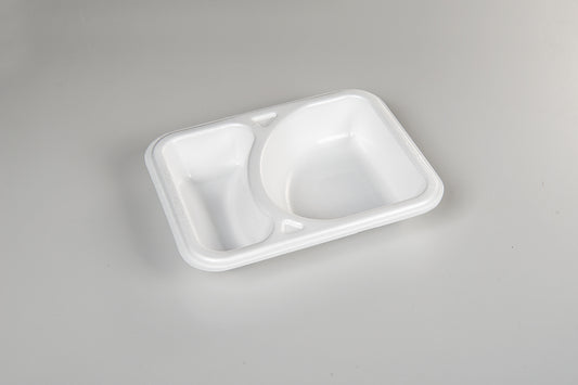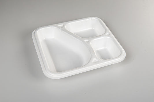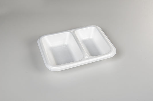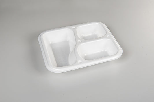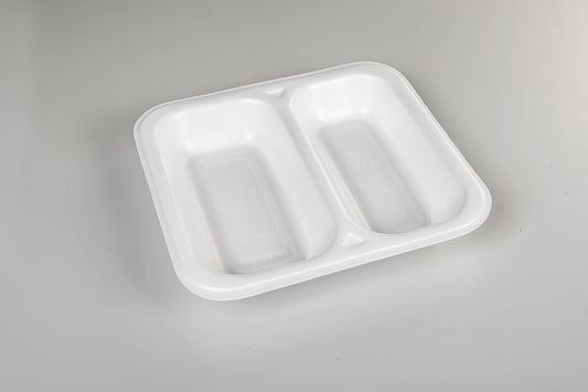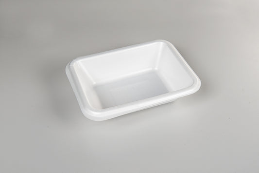 Thermo-Menüschalen bestehen aus extrudiertem und sortenreinem Polystyrol (XPS und PS: Monomaterial). Mit einem Luftanteil von über 98% gehört XPS zu den leichtesten